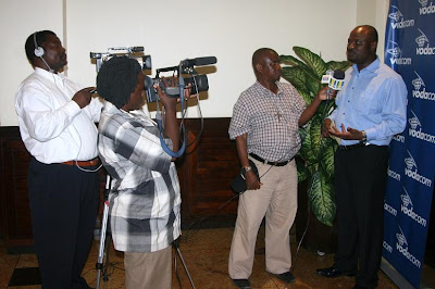 mafuru akiwaeleza bosi wa star tv samuel nyalla na bosi wa masoko wa tbl david minja kuhusu matumizi ya blackberry.